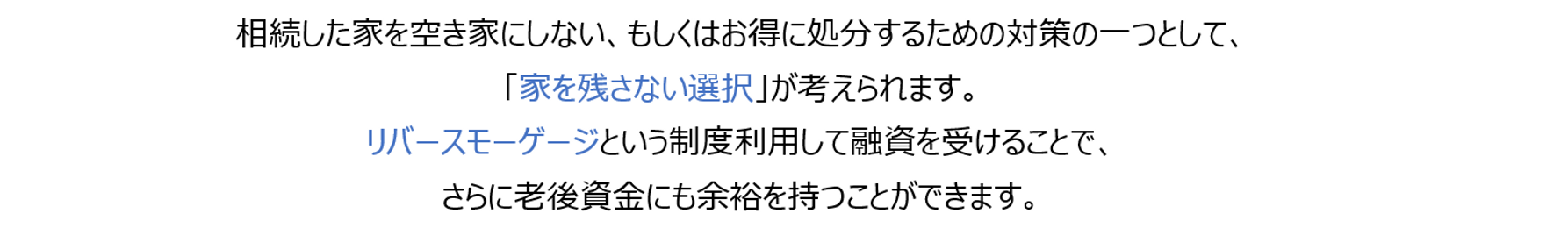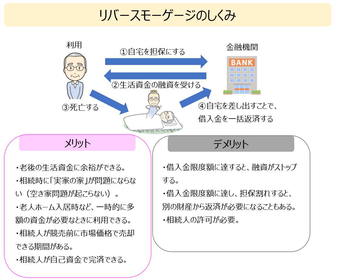 リバースモーゲージとは・・・自宅を担保に金融機関から融資を受ける制度。